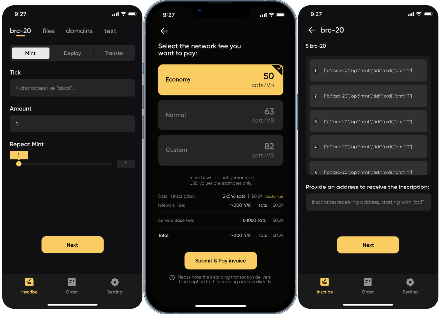 Create personalized digital inscriptions within Inscribe, giving your digital assets a unique touch. Utilize creativity and design to give distinctive identifiers and meanings to your digital ordinals or assets.